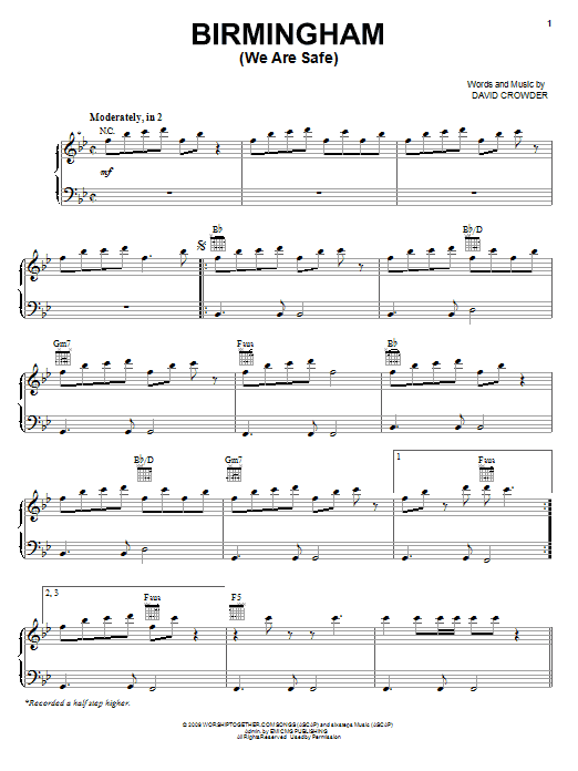 Download or print David Crowder Band Birmingham (We Are Safe) sheet music, chords and digital score arranged for Piano, Vocal & Guitar Chords (Right-Hand Melody). This Christian score includes 6 page(s).