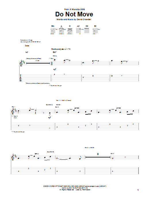 Download or print David Crowder Band Do Not Move sheet music, chords and digital score arranged for Guitar Tab. This Christian score includes 11 page(s).