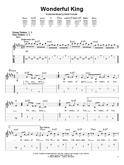 Download or print David Crowder Band Wonderful King sheet music, chords and digital score arranged for Piano, Vocal & Guitar Chords (Right-Hand Melody). This Christian score includes 7 page(s).