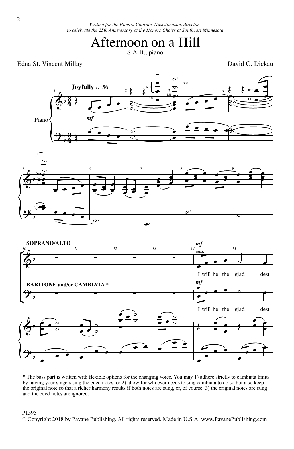 Download or print David Dickau Afternoon On A Hill sheet music, chords and digital score arranged for SAB Choir. This Concert score includes 11 page(s).