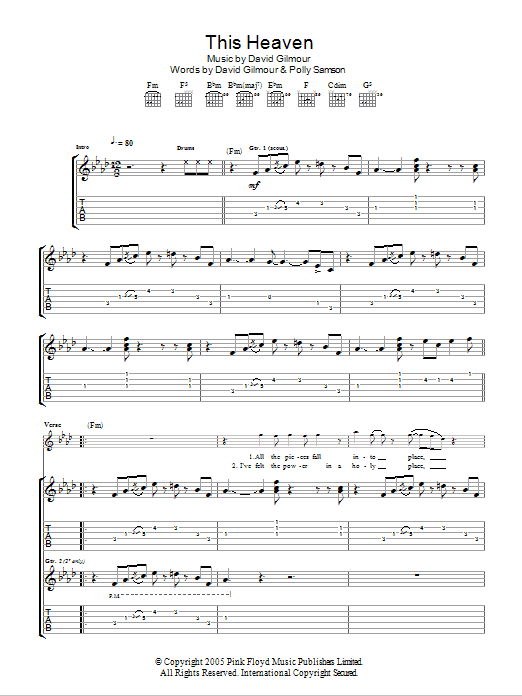 Download or print David Gilmour This Heaven sheet music, chords and digital score arranged for Guitar Tab. This Pop score includes 8 page(s).