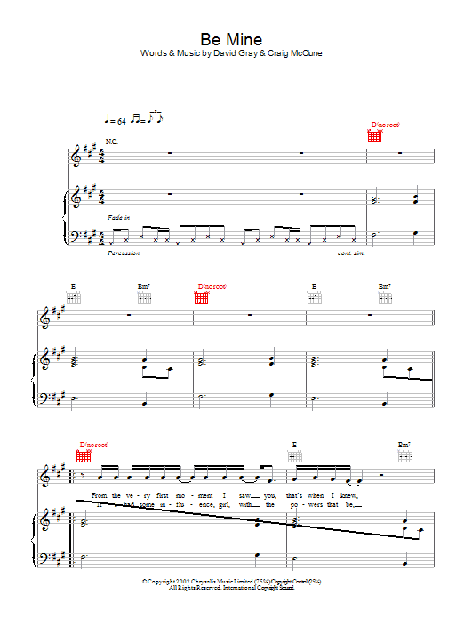 Download or print David Gray Be Mine sheet music, chords and digital score arranged for Guitar Chords/Lyrics. This Rock score includes 3 page(s).