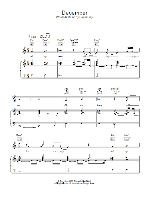 Download or print David Gray December sheet music, chords and digital score arranged for Guitar Tab. This Pop score includes 4 page(s).