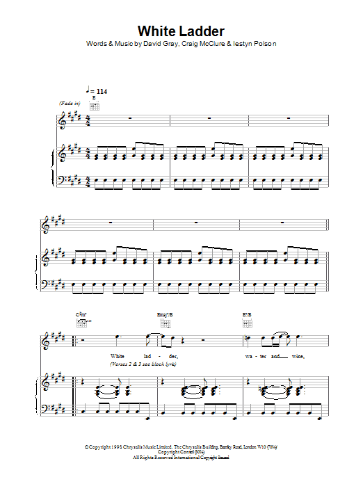 Download or print David Gray White Ladder sheet music, chords and digital score arranged for Guitar Tab. This Rock score includes 7 page(s).