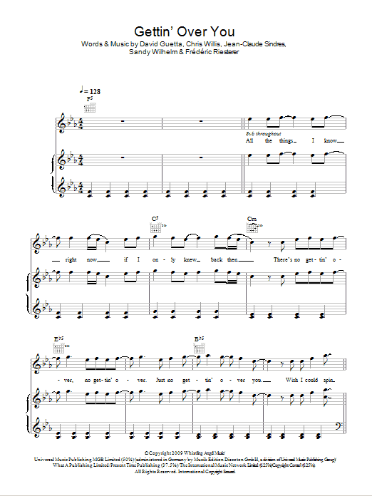 Download or print David Guetta & Chris Willis featuring Fergie & LMFAO Gettin' Over You sheet music, chords and digital score arranged for Piano, Vocal & Guitar Chords. This Pop score includes 8 page(s).