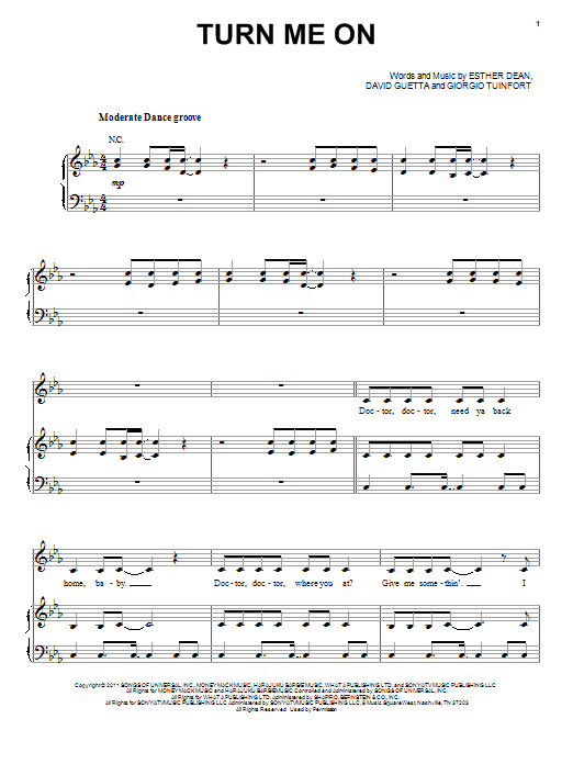 Download or print David Guetta featuring Nicki Minaj Turn Me On sheet music, chords and digital score arranged for Piano, Vocal & Guitar Chords (Right-Hand Melody). This Pop score includes 7 page(s).