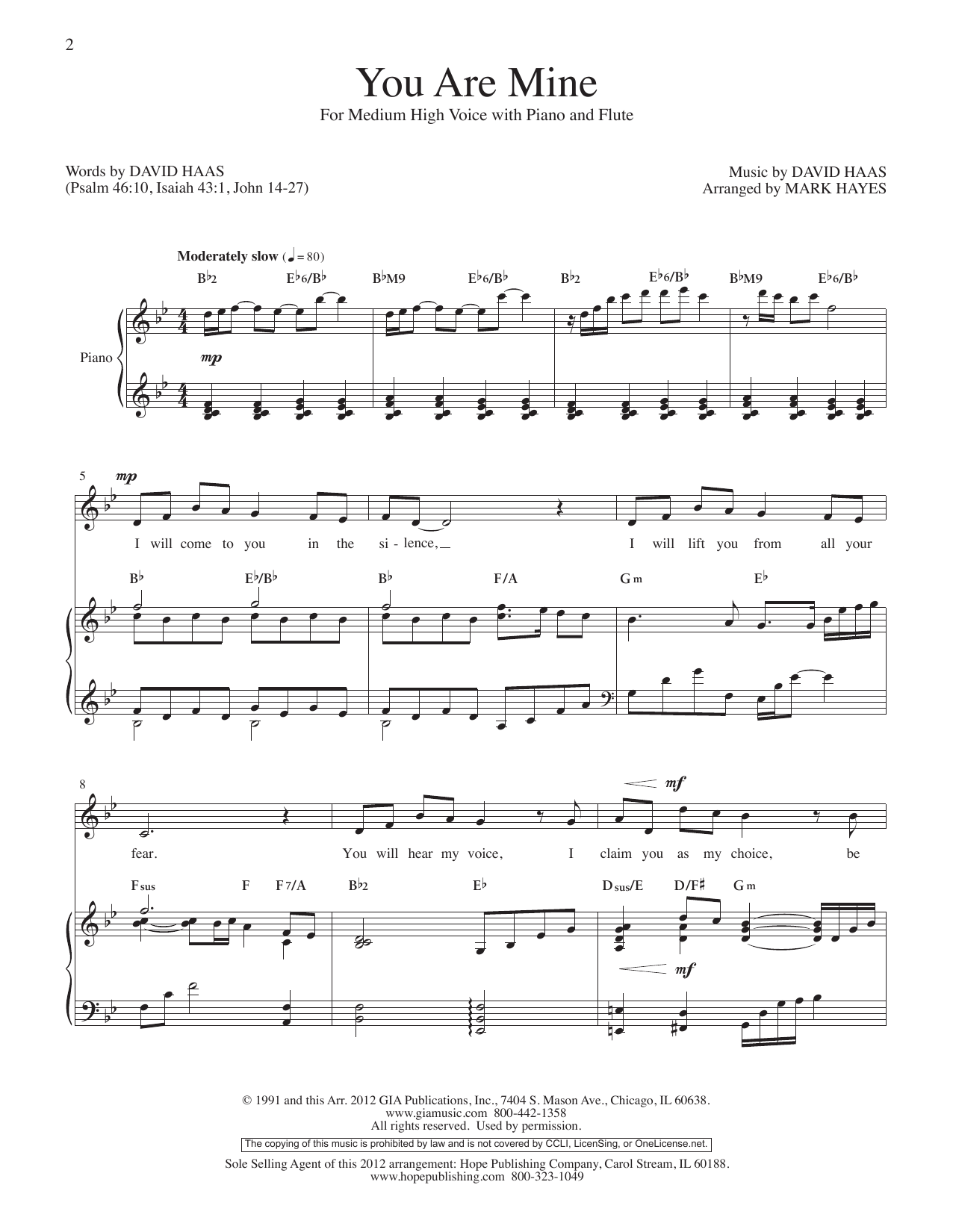 Download or print David Haas You Are Mine sheet music, chords and digital score arranged for Piano & Vocal. This Sacred score includes 8 page(s).