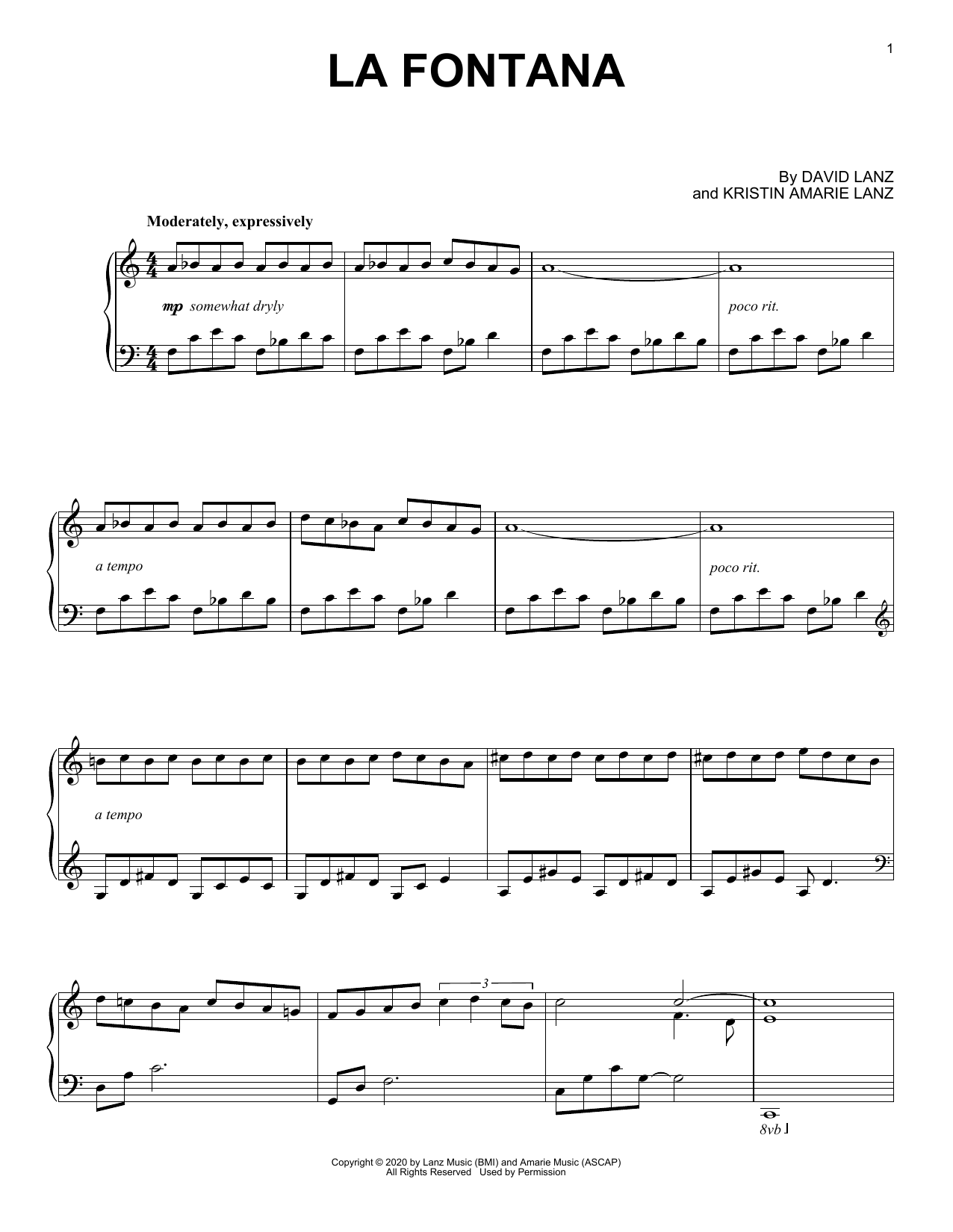 Download or print David Lanz La Fontana sheet music, chords and digital score arranged for Piano Solo. This Contemporary score includes 6 page(s).
