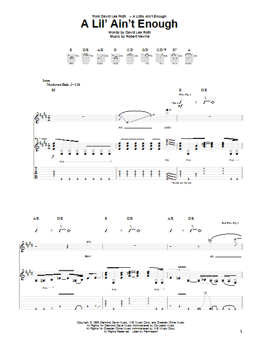 Download or print David Lee Roth A Lil' Ain't Enough sheet music, chords and digital score arranged for Guitar Tab. This Metal score includes 15 page(s).