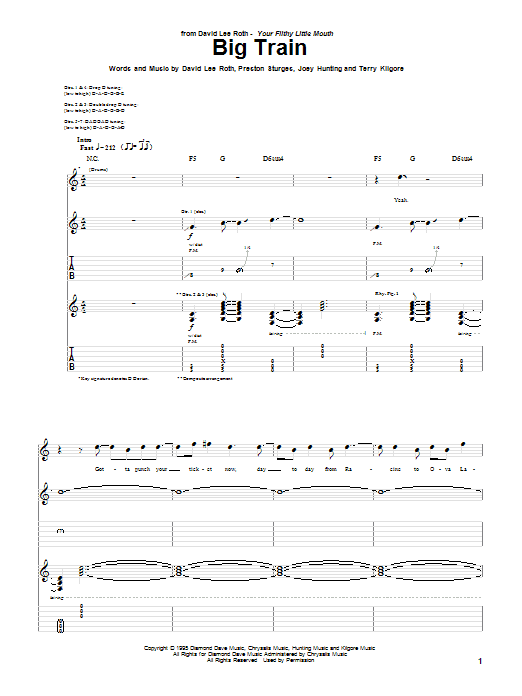 Download or print David Lee Roth Big Train sheet music, chords and digital score arranged for Guitar Tab. This Metal score includes 17 page(s).