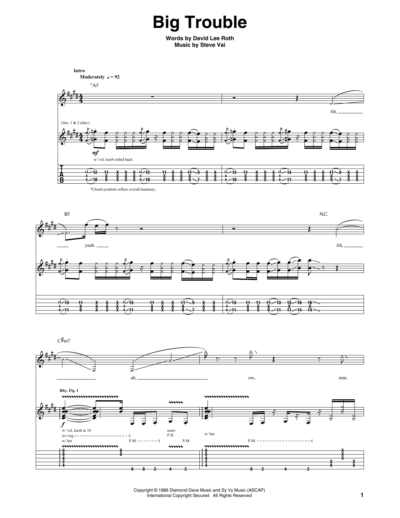 Download or print David Lee Roth Big Trouble sheet music, chords and digital score arranged for Guitar Tab. This Rock score includes 11 page(s).