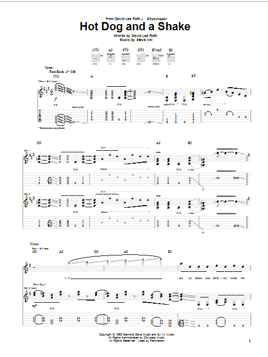Download or print David Lee Roth Hot Dog And A Shake sheet music, chords and digital score arranged for Guitar Tab. This Pop score includes 14 page(s).