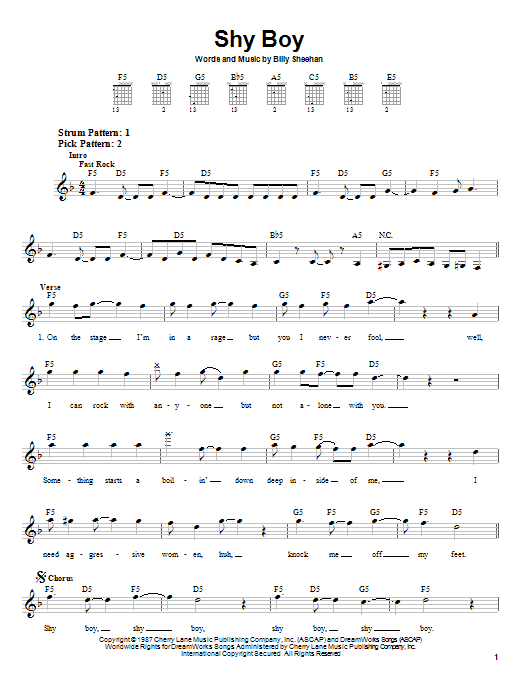 Download or print David Lee Roth Shy Boy sheet music, chords and digital score arranged for Guitar Tab. This Metal score includes 13 page(s).