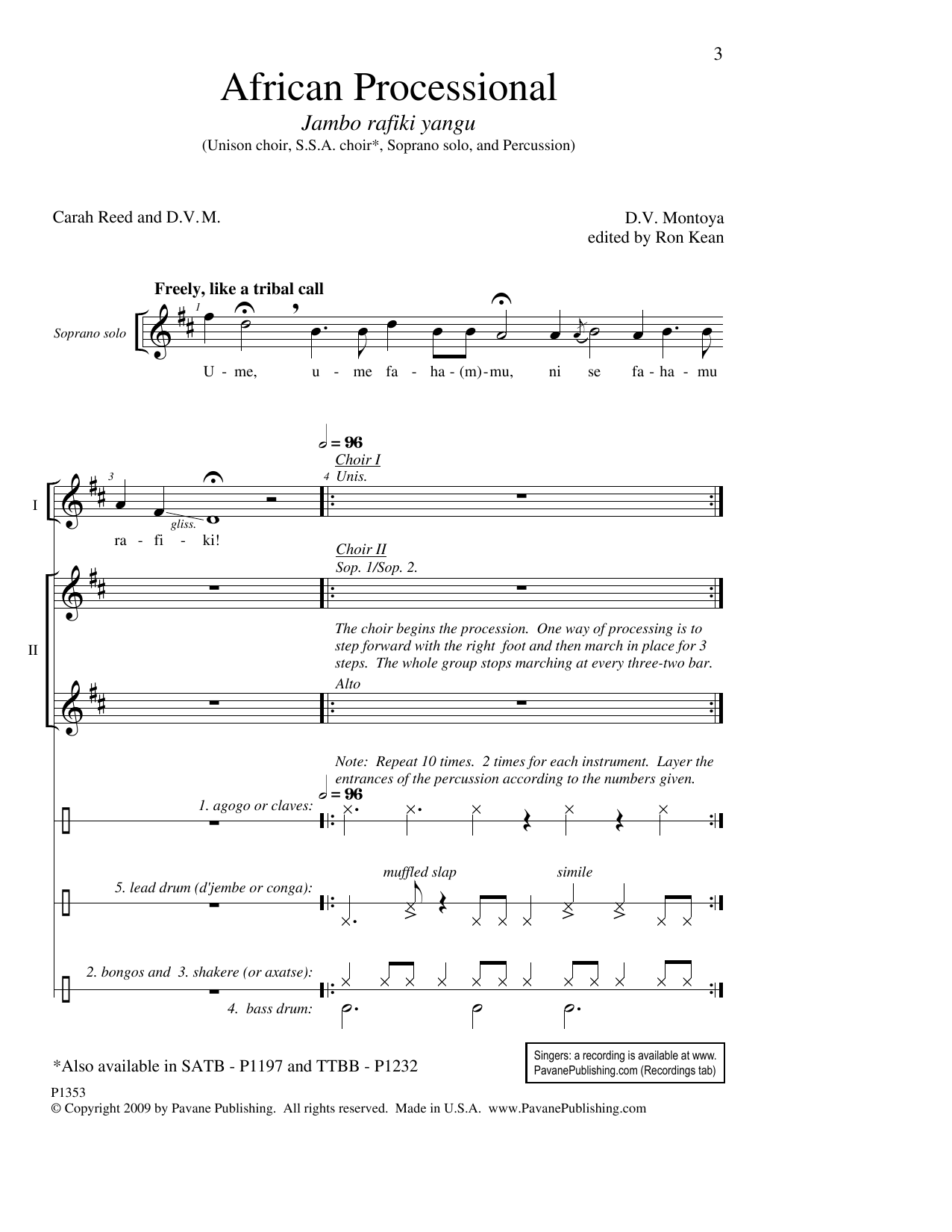 Download or print David Montoya African Processional (ed. Ron Kean) sheet music, chords and digital score arranged for SSA Choir. This African score includes 11 page(s).