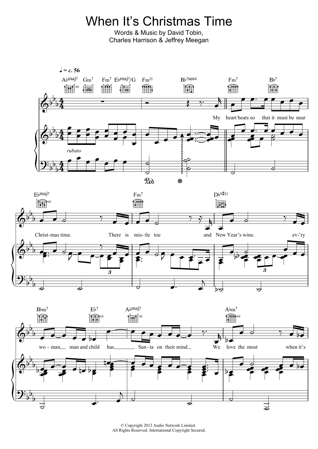Download or print David Tobin When It's Christmas Time sheet music, chords and digital score arranged for Piano, Vocal & Guitar Chords. This Christmas score includes 5 page(s).