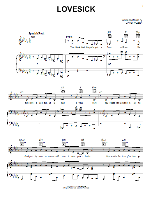 Download or print David Yazbek Lovesick (from Women On The Verge Of A Nervous Breakdown) sheet music, chords and digital score arranged for Piano, Vocal & Guitar Chords (Right-Hand Melody). This Musical/Show score includes 9 page(s).