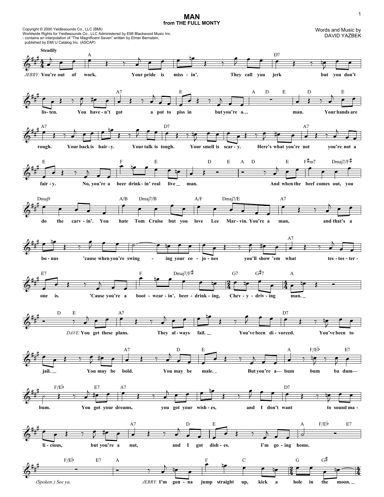 Download or print David Yazbek Man sheet music, chords and digital score arranged for Piano & Vocal. This Musical/Show score includes 5 page(s).