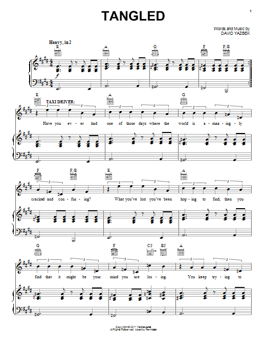 Download or print David Yazbek Tangled (from Women On The Verge Of A Nervous Breakdown) sheet music, chords and digital score arranged for Piano, Vocal & Guitar Chords (Right-Hand Melody). This Musical/Show score includes 16 page(s).