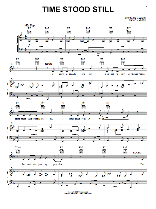 Download or print David Yazbek Time Stood Still (from Women On The Verge Of A Nervous Breakdown) sheet music, chords and digital score arranged for Piano, Vocal & Guitar Chords (Right-Hand Melody). This Musical/Show score includes 6 page(s).