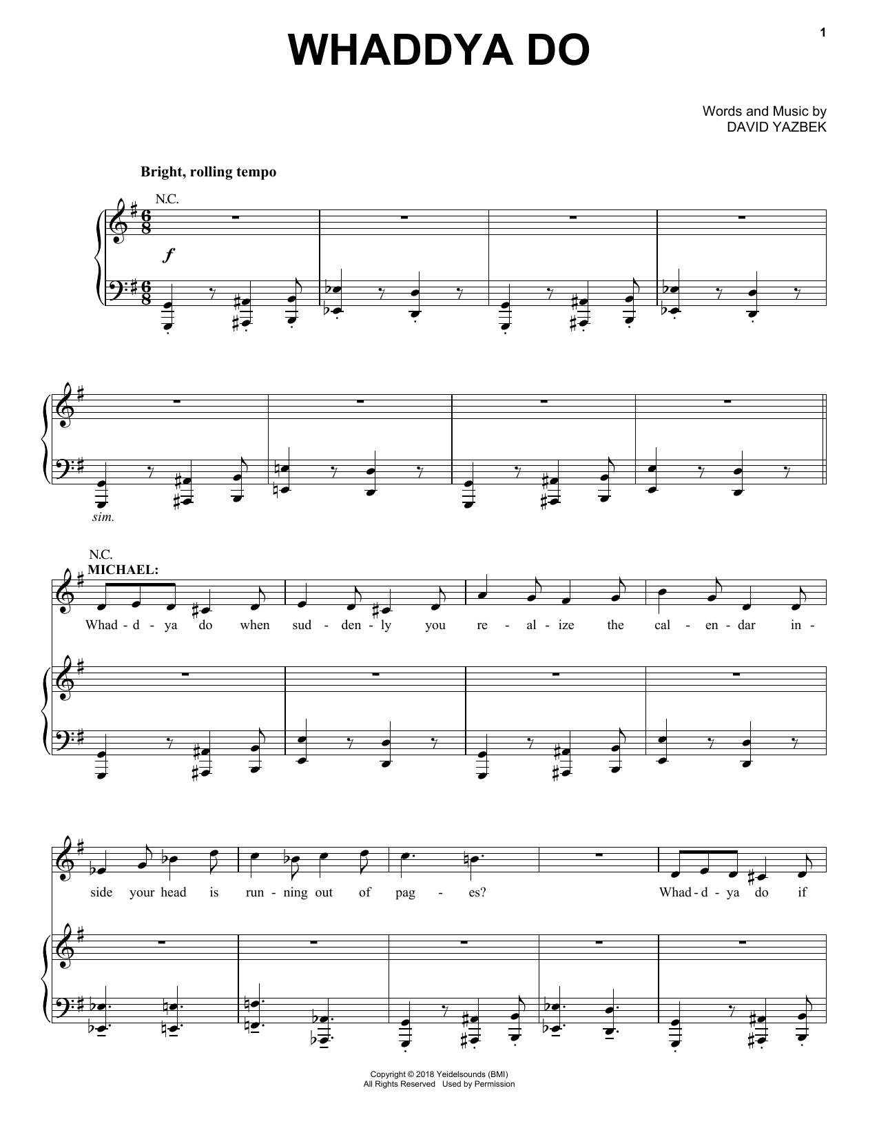Download or print David Yazbek Whaddya Do (from the musical Tootsie) sheet music, chords and digital score arranged for Piano & Vocal. This Musical/Show score includes 9 page(s).