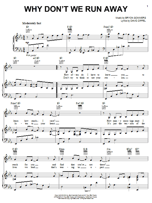 Download or print David Zippel Why Don't We Run Away sheet music, chords and digital score arranged for Piano, Vocal & Guitar Chords (Right-Hand Melody). This Film/TV score includes 4 page(s).