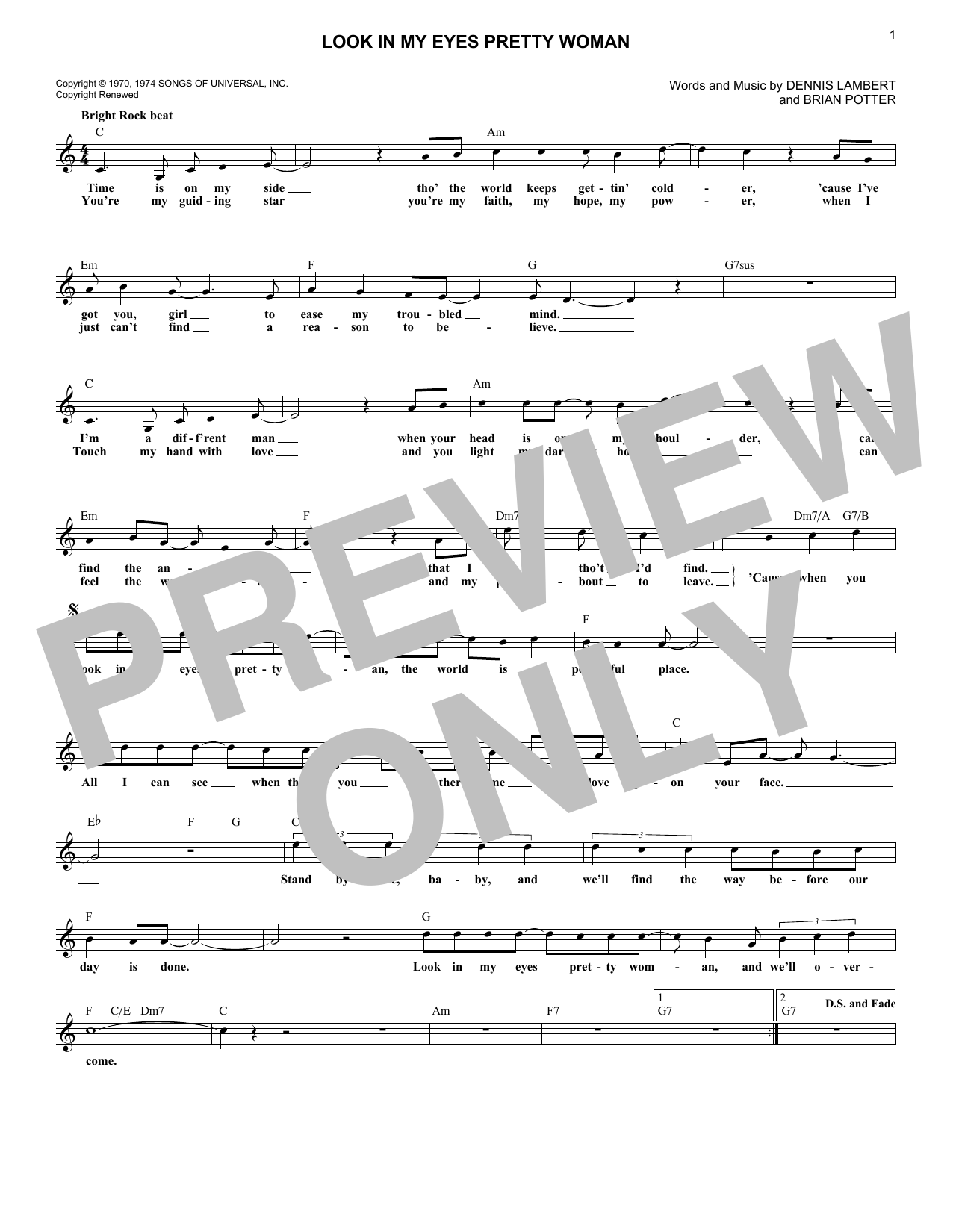 Download or print Dawn Look In My Eyes Pretty Woman sheet music, chords and digital score arranged for Lead Sheet / Fake Book. This Pop score includes 1 page(s).