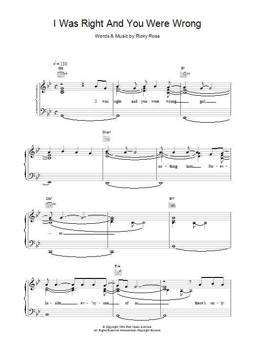 Download or print Deacon Blue I Was Right And You Were Wrong sheet music, chords and digital score arranged for Piano, Vocal & Guitar Chords. This Pop score includes 4 page(s).