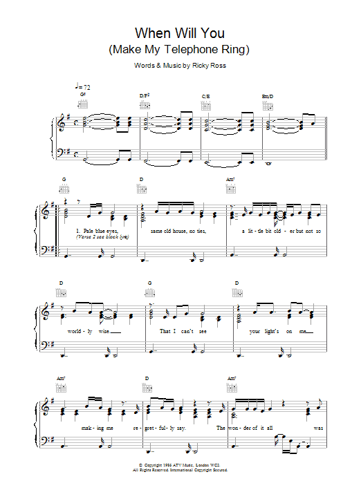 Download or print Deacon Blue When Will You (Make My Telephone Ring) sheet music, chords and digital score arranged for Piano, Vocal & Guitar Chords. This Pop score includes 3 page(s).