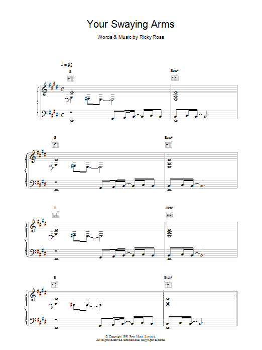 Download or print Deacon Blue Your Swaying Arms sheet music, chords and digital score arranged for Piano, Vocal & Guitar Chords. This Pop score includes 4 page(s).