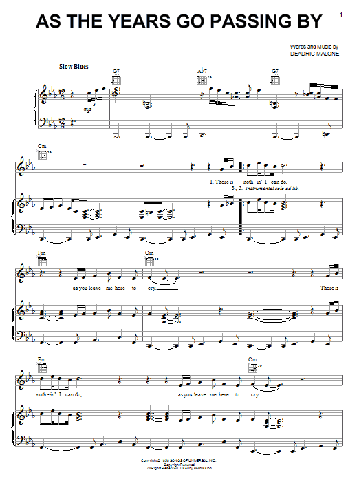 Download or print Deadric Malone As The Years Go Passing By sheet music, chords and digital score arranged for Piano, Vocal & Guitar Chords (Right-Hand Melody). This Blues score includes 3 page(s).