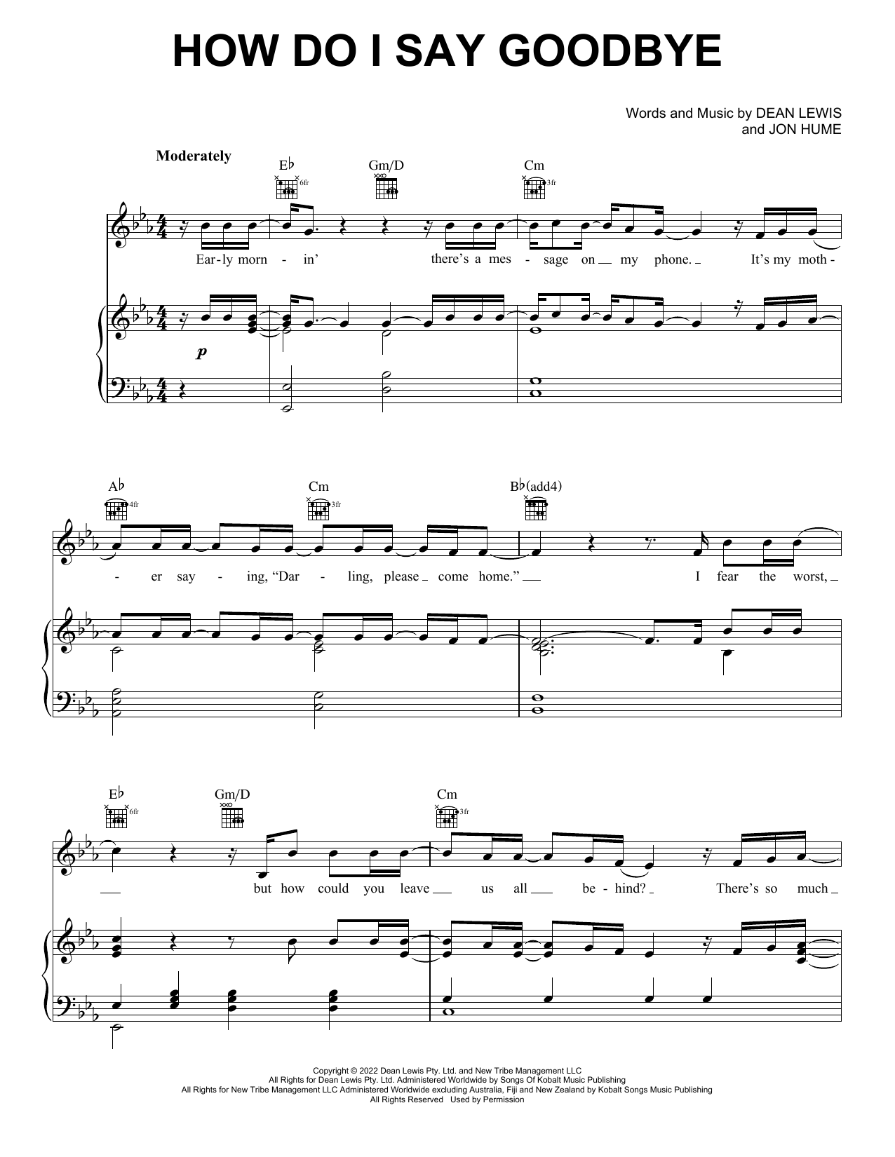Download or print Dean Lewis How Do I Say Goodbye sheet music, chords and digital score arranged for Super Easy Piano. This Pop score includes 2 page(s).