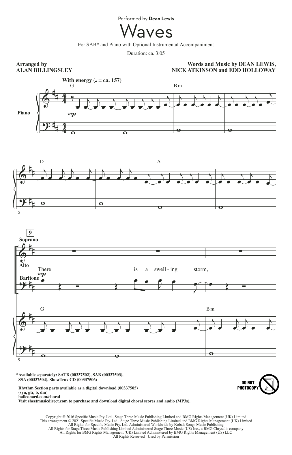Download or print Dean Lewis Waves (arr. Alan Billingsley) sheet music, chords and digital score arranged for SSA Choir. This Pop score includes 13 page(s).