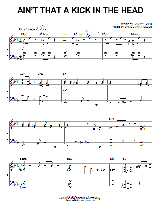 Download or print Dean Martin Ain't That A Kick In The Head (arr. Brent Edstrom) sheet music, chords and digital score arranged for Piano Solo. This Jazz score includes 3 page(s).