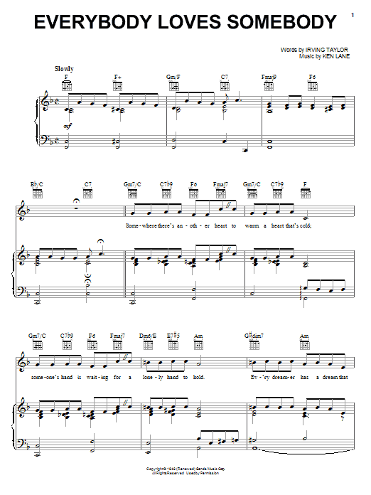 Quick facts Everybody Loves Somebody about digital sheet music