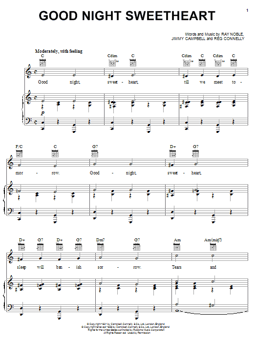 Download or print Dean Martin Good Night Sweetheart sheet music, chords and digital score arranged for Piano, Vocal & Guitar Chords (Right-Hand Melody). This Jazz score includes 3 page(s).