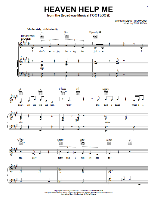 Download or print Dean Pitchford Heaven Help Me sheet music, chords and digital score arranged for Piano, Vocal & Guitar Chords (Right-Hand Melody). This Musical/Show score includes 6 page(s).