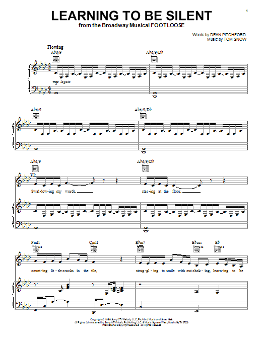 Download or print Dean Pitchford Learning To Be Silent sheet music, chords and digital score arranged for Piano, Vocal & Guitar Chords (Right-Hand Melody). This Musical/Show score includes 5 page(s).