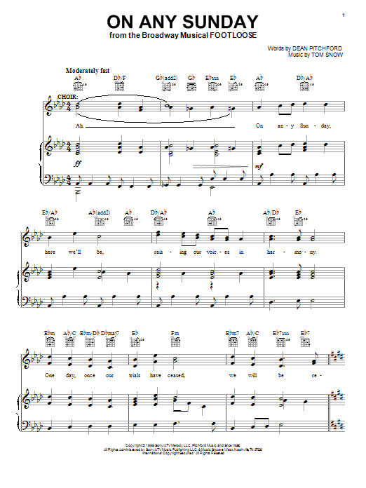 Download or print Dean Pitchford On Any Sunday sheet music, chords and digital score arranged for Piano, Vocal & Guitar Chords (Right-Hand Melody). This Musical/Show score includes 12 page(s).