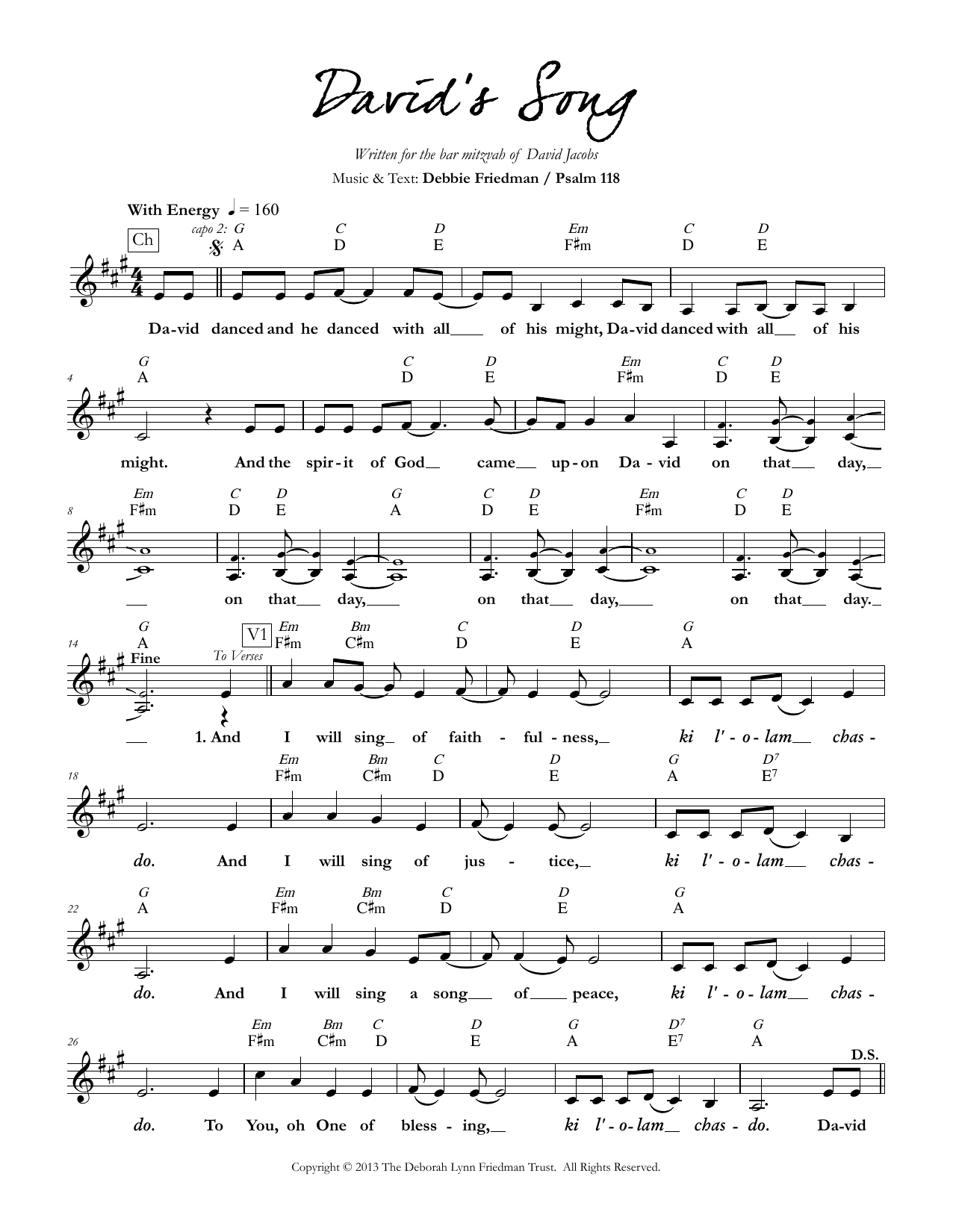 Download or print Debbie Friedman David's Song sheet music, chords and digital score arranged for Lead Sheet / Fake Book. This Jewish score includes 2 page(s).