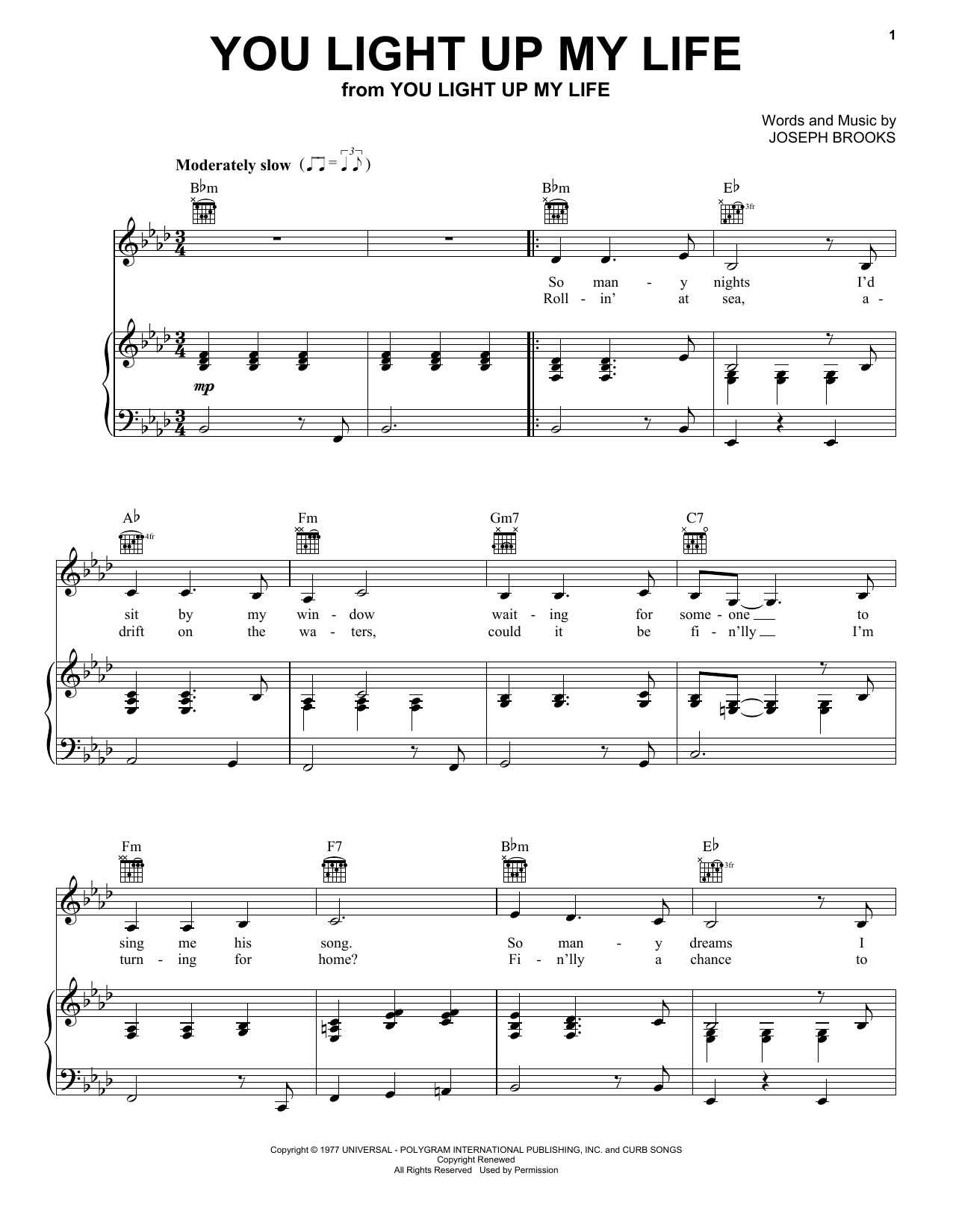 Quick facts You Light Up My Life about digital sheet music