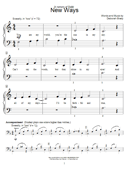 Download or print Deborah Brady New Ways sheet music, chords and digital score arranged for Educational Piano. This Children score includes 3 page(s).