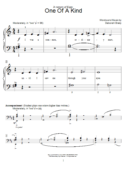 Download or print Deborah Brady One Of A Kind sheet music, chords and digital score arranged for Educational Piano. This Children score includes 3 page(s).