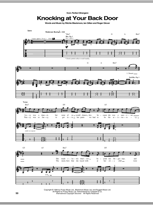 Download or print Deep Purple Knocking At Your Back Door sheet music, chords and digital score arranged for Keyboard Transcription. This Pop score includes 14 page(s).