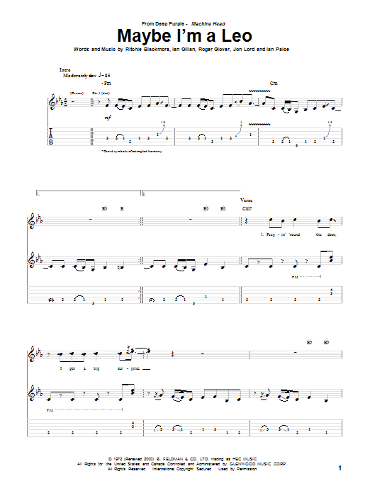 Download or print Deep Purple Maybe I'm A Leo sheet music, chords and digital score arranged for Guitar Tab. This Metal score includes 10 page(s).