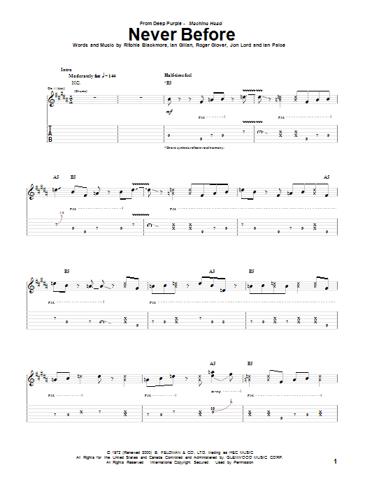 Download or print Deep Purple Never Before sheet music, chords and digital score arranged for Guitar Tab. This Metal score includes 6 page(s).