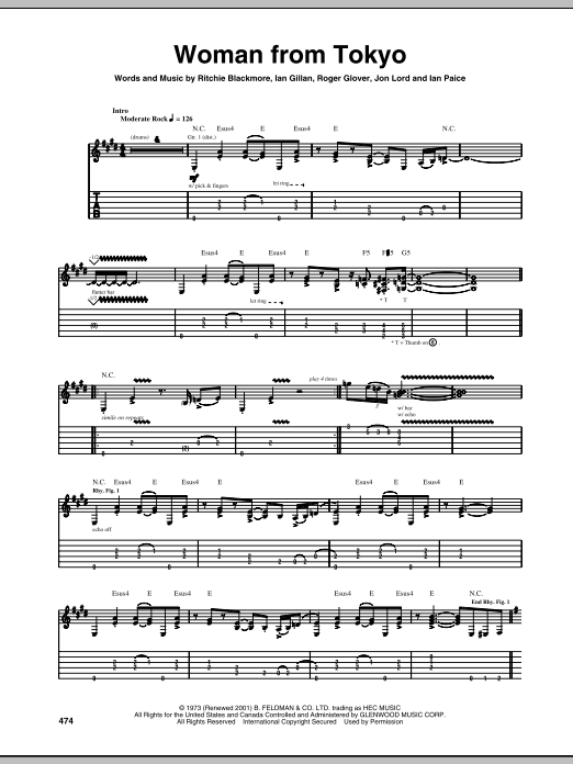 Download or print Deep Purple Woman From Tokyo sheet music, chords and digital score arranged for Guitar Tab. This Metal score includes 8 page(s).