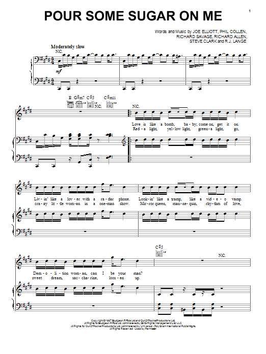 Download or print Def Leppard Pour Some Sugar On Me sheet music, chords and digital score arranged for Easy Piano. This Pop score includes 4 page(s).