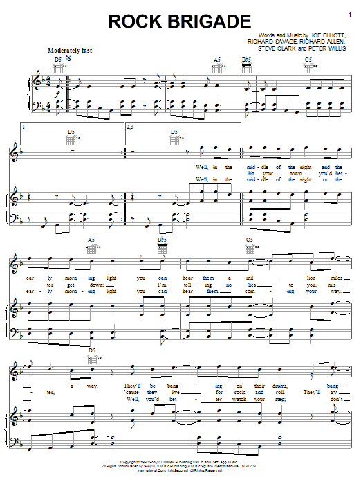 Download or print Def Leppard Rock Brigade sheet music, chords and digital score arranged for Guitar Tab. This Metal score includes 9 page(s).