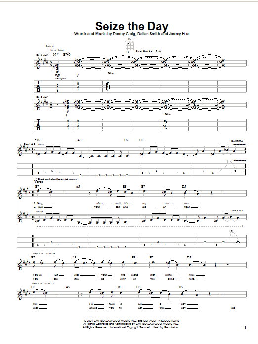 Download or print Default Seize The Day sheet music, chords and digital score arranged for Guitar Tab. This Pop score includes 4 page(s).
