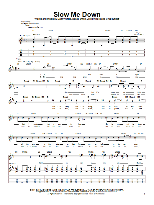 Download or print Default Slow Me Down sheet music, chords and digital score arranged for Guitar Tab. This Pop score includes 6 page(s).
